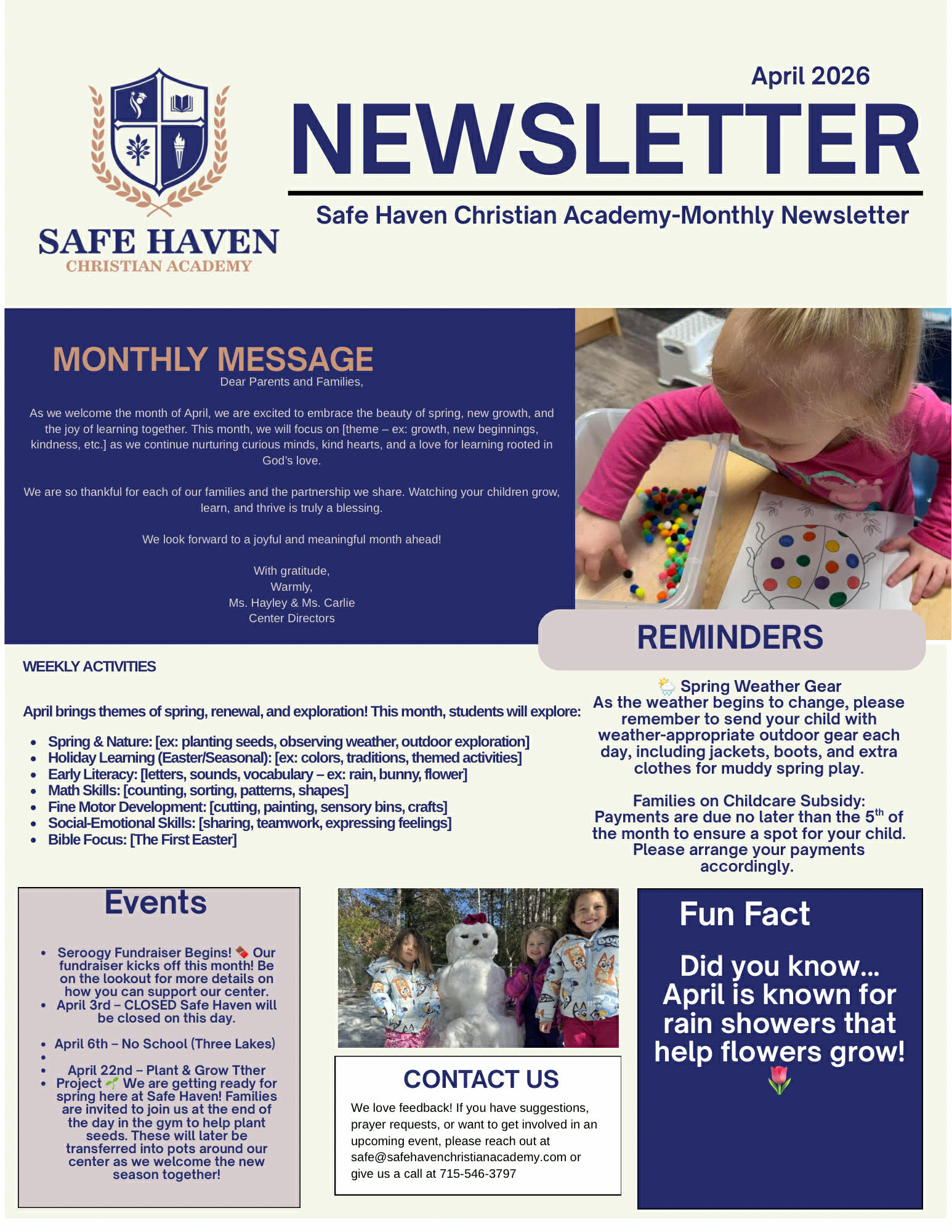 Motivated by our sincere desire to help all children and parents achieve their highest potential, our staff members work together to ensure a safe and encouraging environment in which each child can succeed. We will strive to instill a positive influence through bible based teaching and principles to our children which will be incorporated in our curriculum through staff and volunteers. This will possibly include reading bible stories, listening and singing religious songs, praying before meals, and morning devotion. Building self-esteem and motivation to excel and succeed.